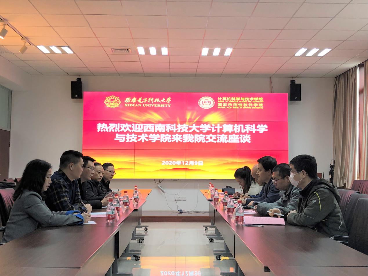 (通讯员 齐富 贠琳红)2020年12月9日上午,西南科技大学taptap竞彩足球副院长赵旭剑一行来taptap官网调研,双方就特色化示范性软件学院建设、本科教育教学和工程专业认证等工作进行座谈交流。学院副院长宋胜利、嵌入式计算技术研究所所长万波、网络工程系主任权义宁、软件工程系副主任褚华、工程专业认证骨干教师付少锋、本科教育教学办公室主任陈龙等参加本次座谈会,会议由副院长宋胜利主持。