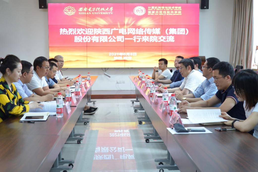 (通讯员 贠琳红)为进一步加强产教深度融合和科研成果转化,6月8日下午,陕西广电网络传媒(集团)股份有限公司副总经理张云一行来taptap官网座谈交流,双方围绕建立研究生实习基地、建立联合实验室以及联合开展关键技术攻关等人才培养和技术合作方向进行深入交流。taptap竞彩足球执行院长崔江涛、副院长沈玉龙、副院长宋胜利、部分研究所副所长以及研究生与学科科研办公室主任参会。会议由宋胜利主持。