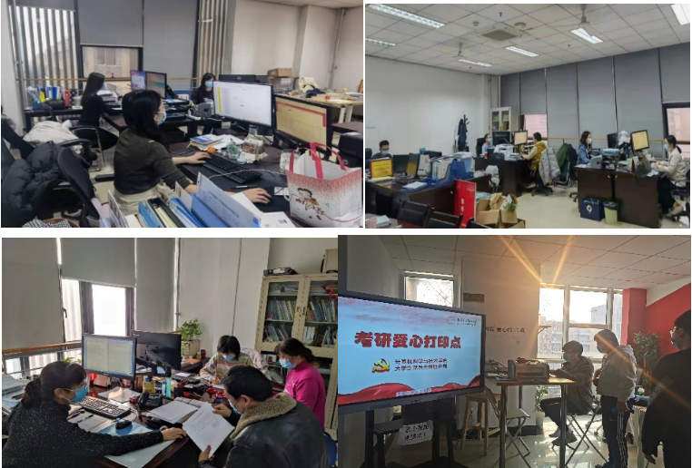 12月23日是西安市按下暂停键的第一天,taptap竞彩足球两间辅导员办公室全体学工干部均自动到岗,有的导员老师干脆搬到学校住。一上班,各位辅导员老师在岗紧张工作,及时传达学校防疫工作要求,组织、督促同学们参加核酸检测,填报晨午检。19级辅导员主动服务在学校隔离观察的14位同学,帮助他们了解近期的线下实验课、期末考试安排,协助申请线上考试,送上问候。18级辅导员积极了解研究生考试相关安排要求,为考研学子答疑解惑,排忧解难。得知因校内打印店关闭,同学们打印核酸报告等有困难,导员马上组织党员同学设立考研爱心打印点。学院还有三位同学突发疾病,辅导员克服困难联系医院,帮助同学及时就医,协助办理住院、检查等手续。南校区机关办公室工作人员也坚守岗位,积极沟通协调,加班加点准备期末考试资料,做好教务服务等工作。