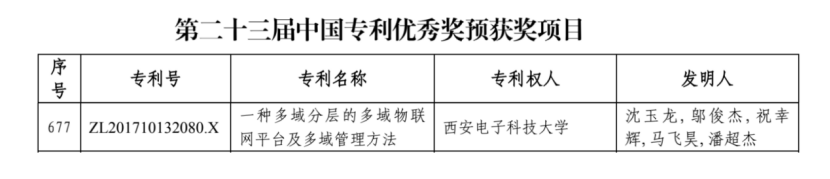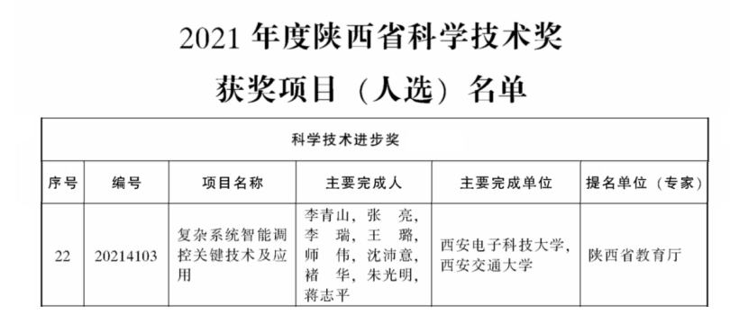 (通讯员 齐富)近日,《陕西省人民政府关于2021年度陕西省科学技术奖励的决定》和《国家知识产权局关于评选第二十三届中国专利奖的通知》发布,由taptap竞彩足球李青山教授牵头的项目“复杂系统智能调控关键技术及应用”荣获陕西省科学技术进步奖二等奖,沈玉龙教授团队的发明专利“一种多域分层的多域物联网平台及多域管理方法”预获中国专利优秀奖,是学校唯一入选本届中国专利奖的专利。