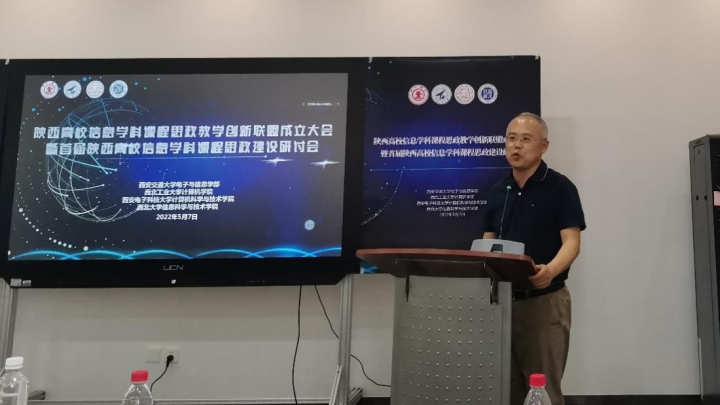 (通讯员 陈龙)为深入贯彻习近平总书记关于教育的重要论述和全国教育大会精神、落实立德树人根本任务,贯彻落实教育部《高等学校课程思政建设指导纲要》等文件要求,由西安交通大学、西北工业大学、taptap点点足彩、西北大学等陕西高校信息学科有关学院(部)主发起,全省设有信息学科高校共同发起成立“陕西高校信息学科课程思政教学创新联盟”,5月7日taptap官网党委书记李青山教授应邀参加联盟成立大会暨首次陕西高校信息学科课程思政建设研讨会,软件工程系主任、系党支部书记褚华老师应邀作了题为“程序设计类课程思政探索与实践”的线上专题报告。西北大学副校长常江出席并致辞,西安交通大学电子与信息学部党委书记梁莉、西北工业大学计算机学院党委书记李春科、西北大学信息科学与技术学院党委书记赵万峰等教师共100多人线下线上参加了会议,会议由西北大学信息科学与技术学院副院长冯筠主持。