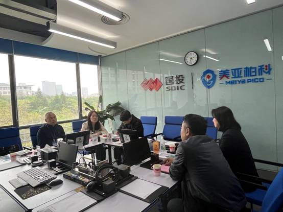 随后,学院一行前往易联众信息技术股份有限公司,在数字化展厅详细了解了企业成立以来的发展历程、在人社医疗领域取得的成果以及专注于民生福祉、社会和谐的历史使命与愿景。企业学院一行与易联众集团副总裁吴天恩、人力资源部总经理石韵熙、人力资源部HRBP张海海、总裁办公室助理王凯进行座谈交流。