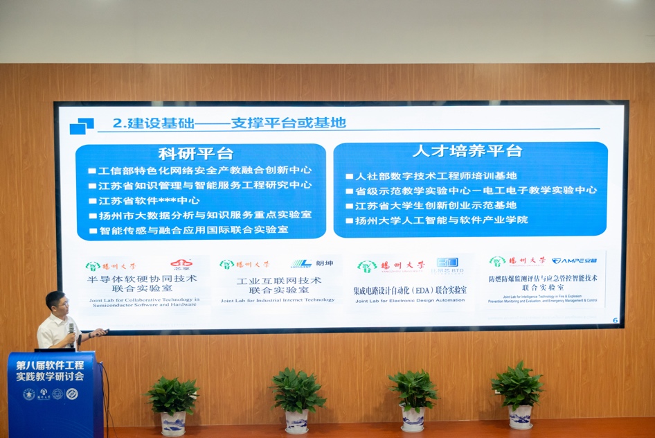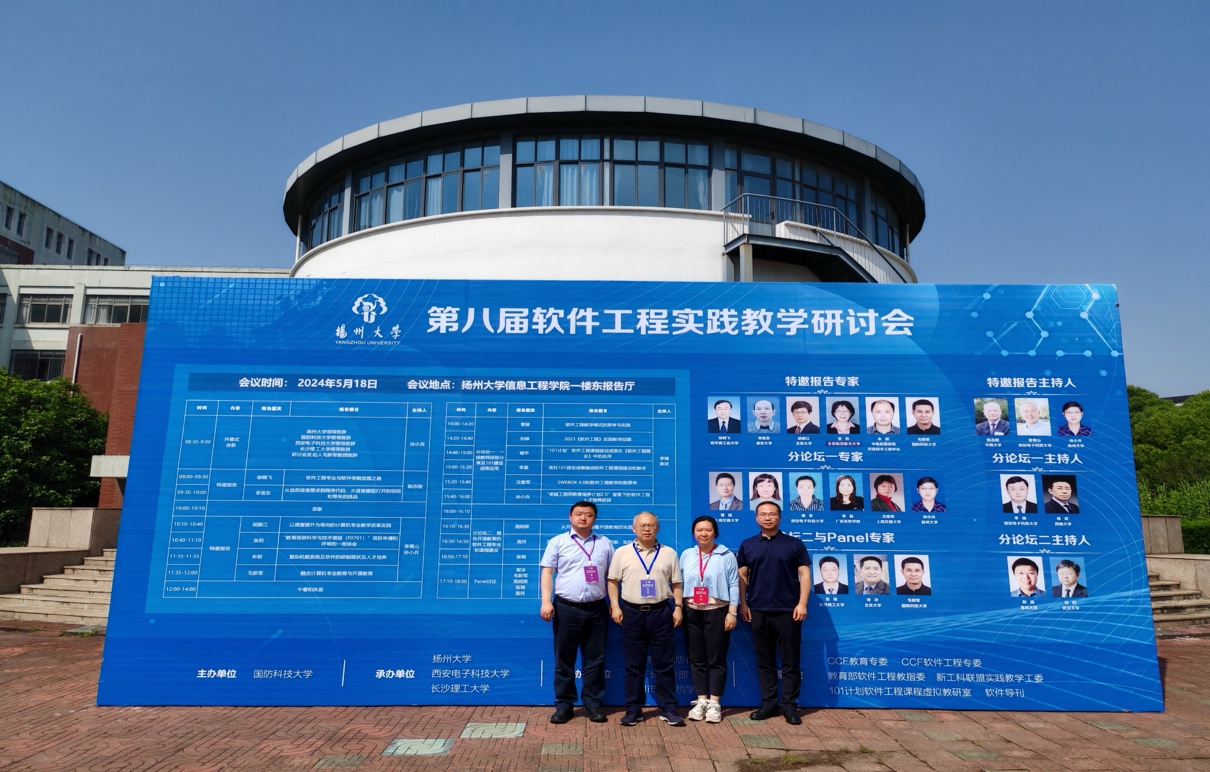 在软件定义一切和大模型时代,特色化示范性软件学院建设、软件工程专业建设、课程教学和人才培养面临着新的机遇和挑战,为了更好的促进软件工程教育教学方法和实践教学成果的交流和分享,推动软件工程专业建设和教学改革,提升软件人才的培养质量。2024年5月18日,由国防科技大学主办,扬州大学、taptap点点足彩和长沙理工大学联合承办的第八届软件工程实践教学研讨会在扬州大学信息工程学院(人工智能学院)东报告厅举行。CCF计算机教育专委会副主任、国防科技大学毛新军教授,扬州大学信息工程学院(人工智能学院)院长孙小兵教授,taptap点点足彩taptap竞彩足球党委书记、软件工程学科负责人李青山教授担任会议联合主席。