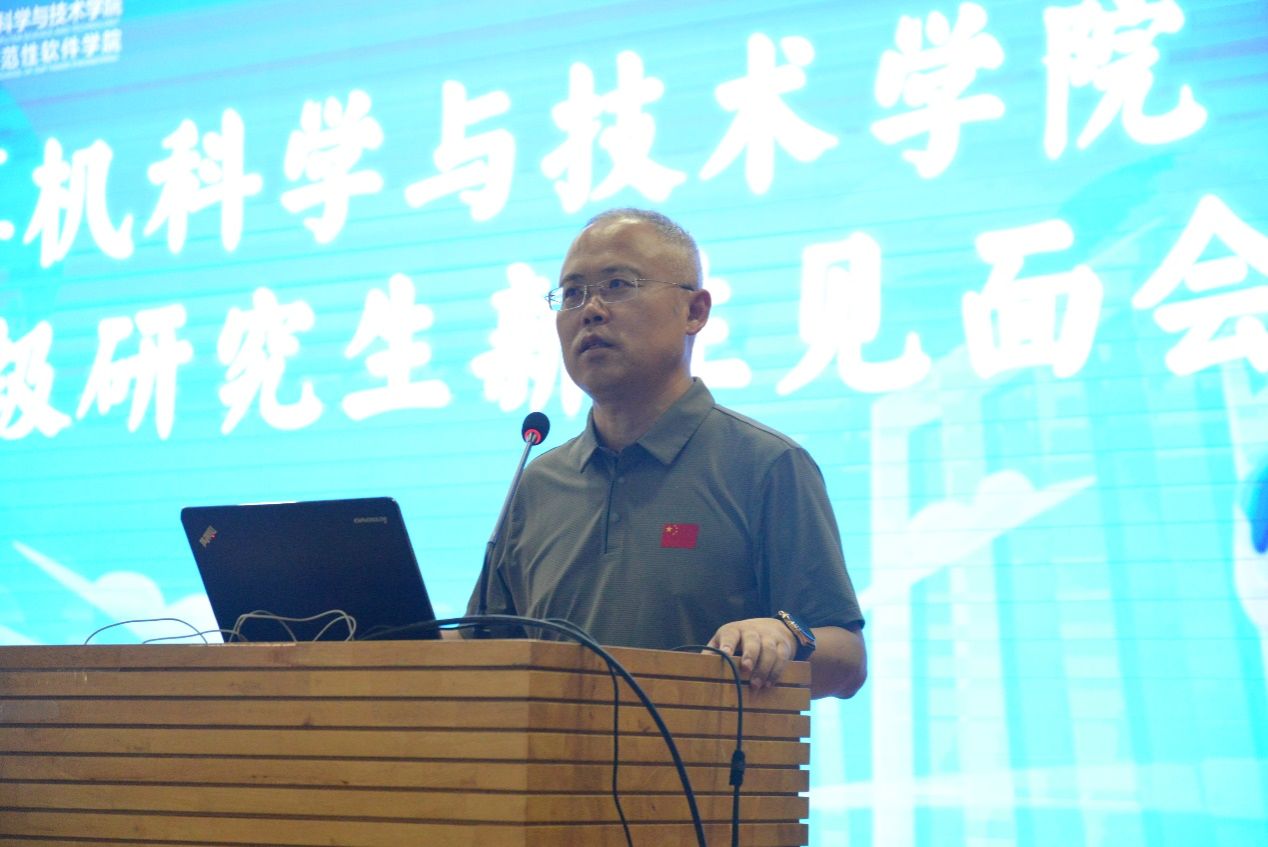 最后,学院党委书记李青山围绕“自豪、传承、精气神”三个关键词寄语研究生新生。他回顾了西电的红色基因和电子信息特色,并谈到学院自成立以来,就肩负着为党和国家事业培养专业人才的重任,希望每位新生都能以进入计科院为荣,收获自己的发展增量;结合学院的历史地位和现实成就,对建院六十余年凝练出的“三系精神”内涵和“严谨、担当、勤勉、开放”的院训进行解读,号召同学们在实践与学习中传承宝贵精神财富;最后,他希望每位同学涵养积极向上的“精气神”,自觉锤炼勤勉努力的品格,尽快融入学院的学习生活,珍惜时光,在矢志创新中找准定位、笃定前行。