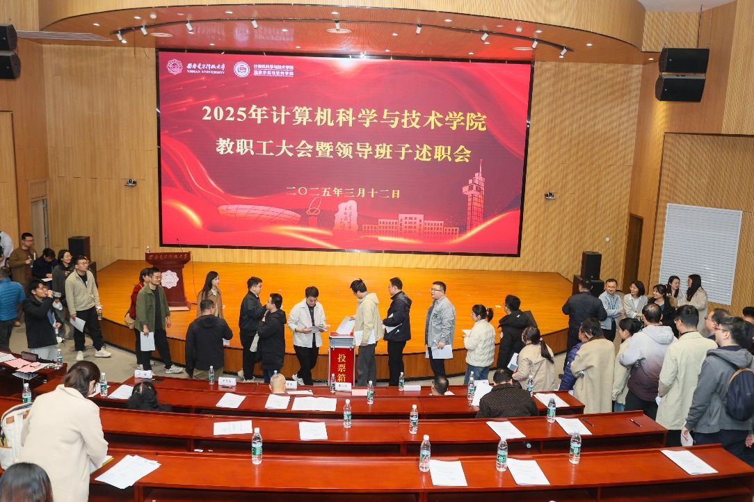 (通讯员 同榛 陈龙)3月12日下午,taptap竞彩足球在南校区网安大楼B101会议室召开2025年教职工大会暨2024年度领导班子述职会。按照学校相关要求和学院工作安排,本次会议的主要内容有三项:传达学校2025年工作会议精神并安排部署学院2025年工作;表彰学院2024年度先进人员;开展学院领导班子和领导干部2024年度考核述职。taptap竞彩足球领导班子成员、全体教职工及学生代表等220余人参会,会议由学院党委书记李青山主持。