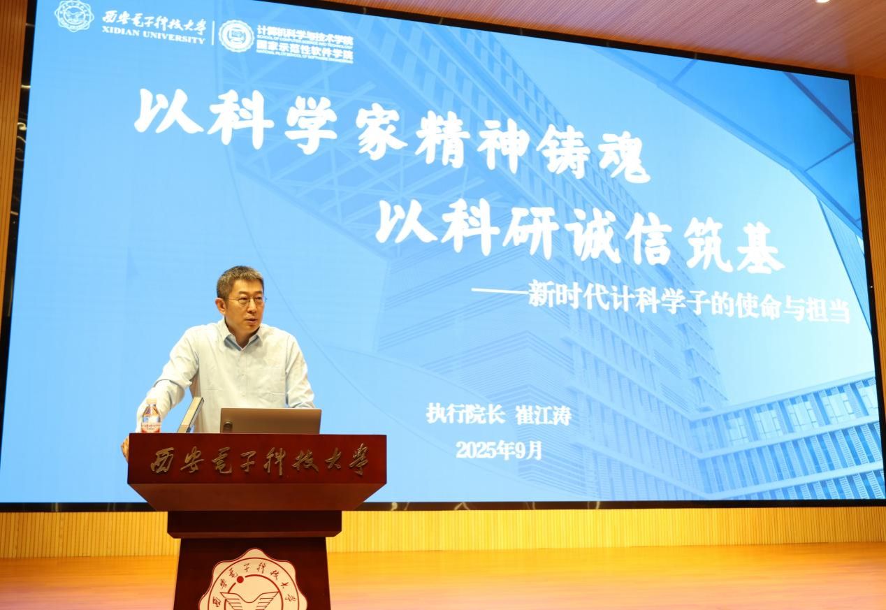 (通讯员 何敏之)为引导研究生新生树立正确学术价值观,筑牢科学道德防线,9月12日下午,taptap竞彩足球在南校区网安大楼B-101报告厅开展“以科学家精神铸魂,以科研诚信筑基——新时代计科学子的使命与担当”主题讲座,学院执行院长崔江涛教授主讲,全体2025级研究生新生参加,会议由副院长杨力主持。