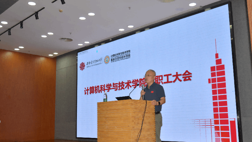 学院执行院长崔江涛结合学院实际重点回顾了学校十三项重点任务上半年进展情况,解读了学校关键核心指标完成情况,说明了新形势新要求下学校统筹推进的八项综合改革和八项战略行动,传达了学校下半年工作部署,以学校“1236阶段性发展目标”为切入点分析了学院发展目标和思路。他强调,2025年是“十四五”规划收官之年,也是“十五五”规划的谋篇布局之年,要强化顶层规划与战略引领,学院将紧扣学校年度重点任务,围绕“国家急需、社会关切”的领域推动有组织科研“落地见效”,重点推进师资队伍建设,加快高水平科研平台布局,推动学院各项事业高质量发展,为学校发展贡献“计科力量”。