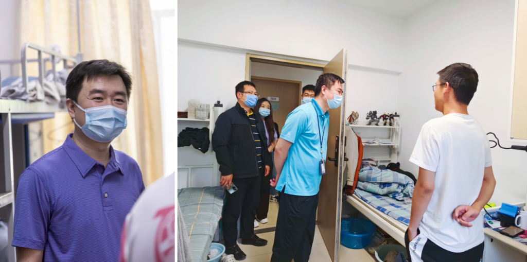 Beat365中国唯一官方网站院长刘明杰一行到实验7号楼研究生工位、沙河东区和西区宿舍看望本研学生,与同学们详细沟通了学习和科研进展,了解学生需求,鼓励同学们合理安排好科研、上课、学习及生活,积极锻炼身体,以实际行动守护美丽校园。