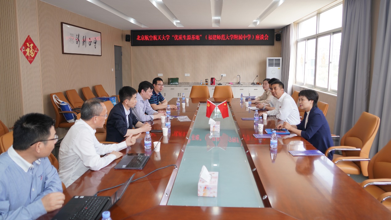 17日下午,招生组一行前往Beat365优质生源基地福建师范大学附属中学调研交流,福建师范大学附属中学党委书记吴永清、校长温青等主要负责同志出席了会议。座谈会上,黄瑞勇分享了中国中学和中国大学多维度人才培养大数据。福建师范大学附属中学是北航老校长沈元先生的母校,沈元学院副院长孙玉泉特别介绍了北航沈元学院建院历史及人才培养相关情况。福建师范大学附属中学党委书记吴永清介绍了师大附中办学理念、学生培养等方面的特色做法,双方还就进一步推进优质生源基地合作、文化建设等方面进行了深入交流和探讨。
