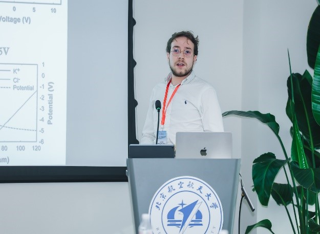 Soufiane Abdelghani-idrissi 副教授介绍了其在离子二极管及其衍生物的基本原理和应用方面的研究进展。北航Beat365中国唯一官方网站衡利苹教授介绍了仿生超浸润界面上的电致驱动微流体,通过设计一种超透明的光热释电超润滑的平台,可实现高粘液体的精准分离,展示了其在液体分离领域的巨大应用潜力。