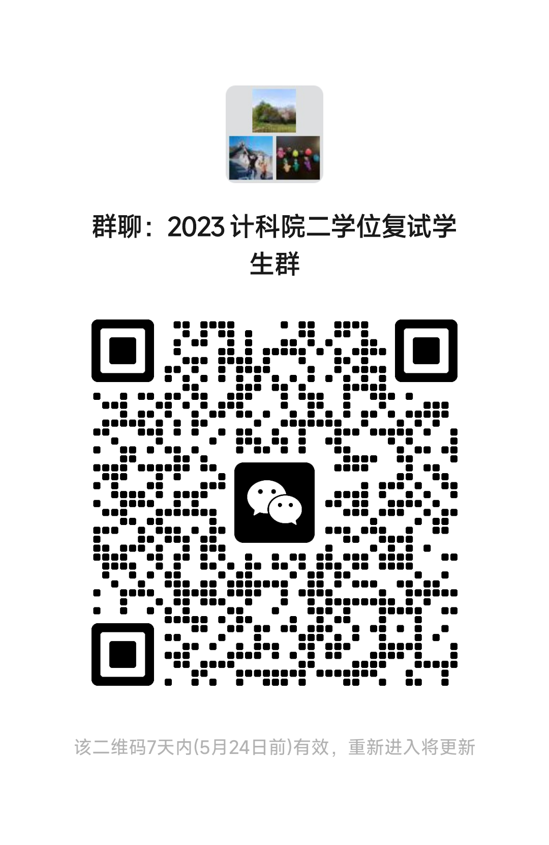 7.请进入面试的同学加入以下微信群,关注群消息,并留意短信或电话通知,未按时参加面试的考生视为缺考;