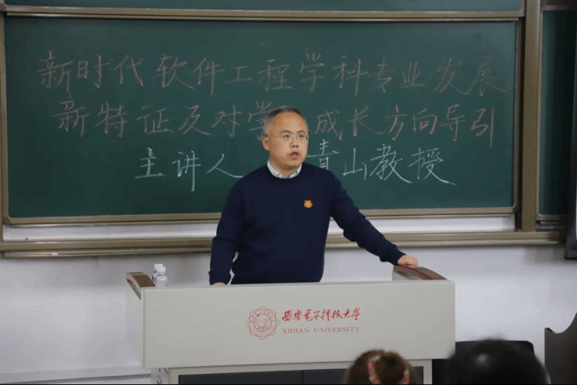 李教授对学院软件工程学子的成长成才提出了建议,提出了“同频共振历史潮流时代发展,主动融入国家主流社会主律”的殷殷期许。他指出,作为西电学子,同学们首先要认清时代潮流,洞悉时代主旋律,认清行业和技术发展的趋势,紧跟时代发展大势;其次是要理清我国发展时空方位,把握个人特色优势,在时代洪流中保持头脑清醒;第三要同频国家需求,紧跟国家、产业、行业的需求,练就过硬本领,将个人发展融入到国家发展的大潮中;第四要共振社会主律,将个人价值与幸福与中国梦融为一体,做德智体美劳全面发展、堪当大任的时代青年。在报告的最后,李教授勉励各位计科学子珍惜时光,珍惜时代和国家给予的机会,掌握知识、增强本领,提升自我,将个人发展与时代、民族、国家的发展同频共振,实现自我价值与社会价值的有机统一。