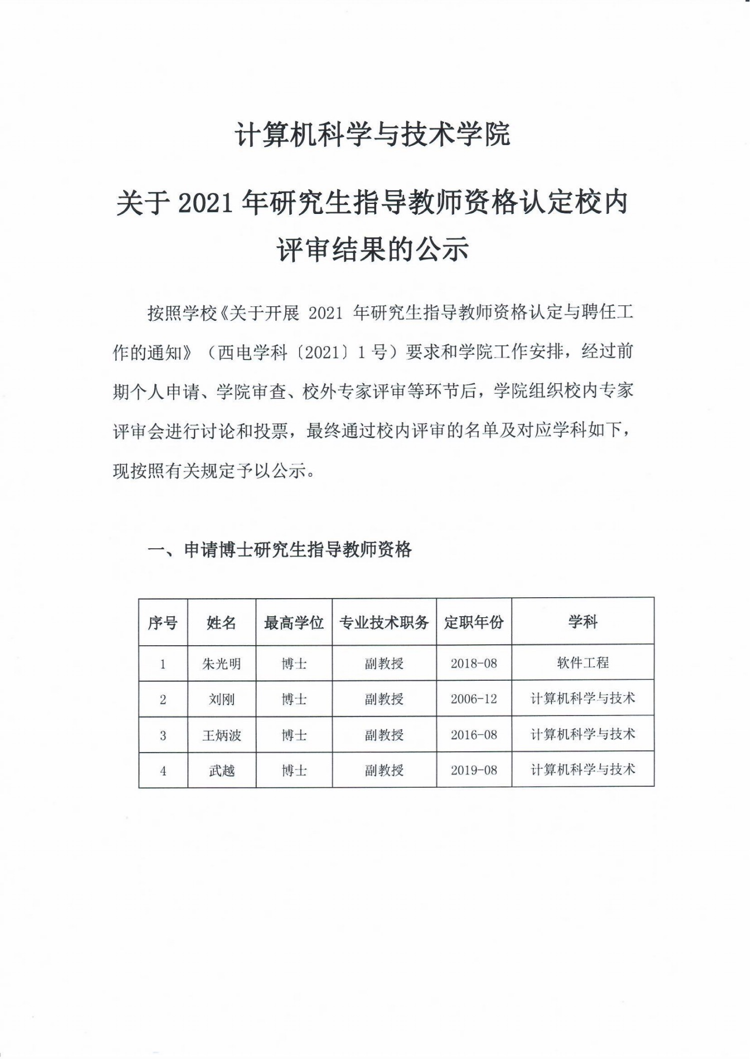 关于2021年研究生指导教师资格认定校内评审结果的公示