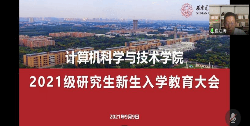 执行院长崔江涛首先代表学院欢迎2021级研究生新生加入taptap竞彩足球大家庭。随后,他从西电的历史沿革和学院的务实学风出发讲述了taptap官网在人才培养、学术领域、国家发展方面所作的突出贡献。他结合学院人才培养和学科建设,分享了对新发展理念“创新”、“绿色”、“共享”的认识和体会,勉励新生切实增强个人科研创新能力、可持续发展能力、团结协作能力,坚定理想信念,树立道德情操,将个人职业发展与新时代历史使命相融合,做一名“胸怀国之大者”,为实现中华民族伟大复兴中国梦贡献力量。