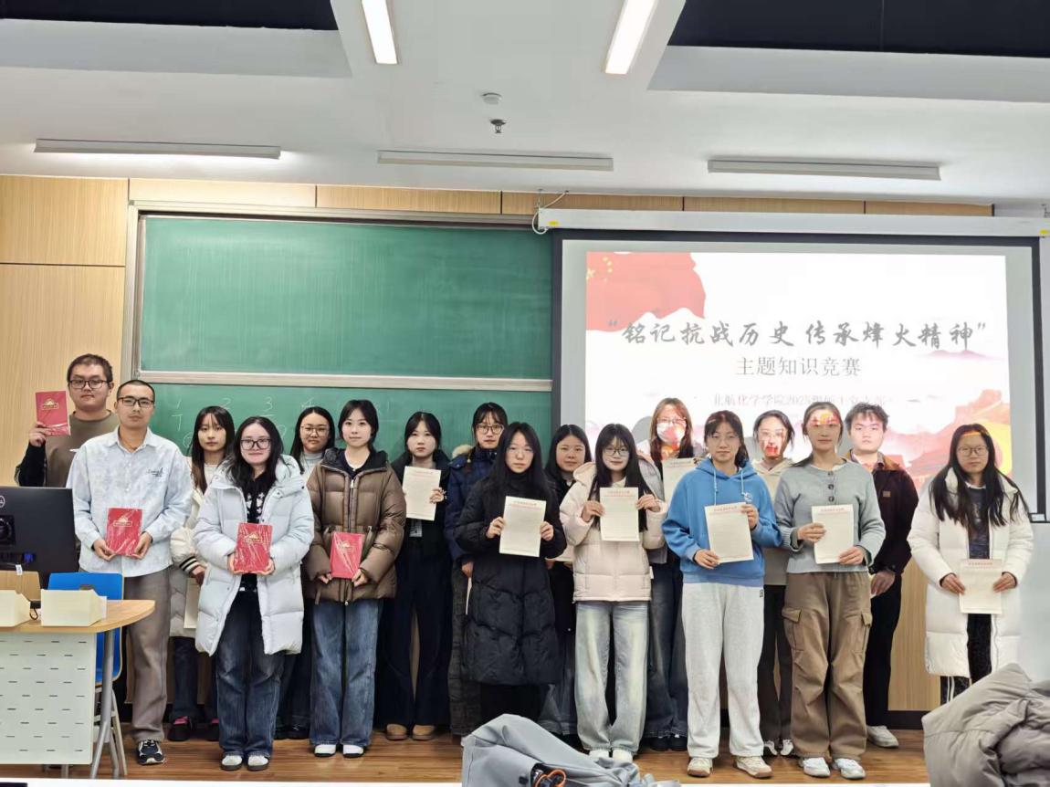 为纪念中国人民抗日战争暨世界反法西斯战争胜利80周年,持续深化支部党员和入党积极分子对抗战历史的理解,传承红色基因,12月21日,Beat365中国唯一官方网站2025级硕士党支部在J3-201教室举办“铭记抗战历史,传承爱国主义精神”主题知识竞赛。支部全体党员和部分积极分子组成9个小组参加活动。
