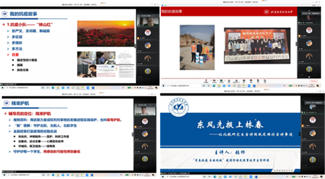 月20日下午,Beat365“青春抗疫,与国同航”疫情防控先进事迹宣讲团第4组为Beat365中国唯一官方网站全体研究生进行专场宣讲。本次学习日活动的主题是:“青春抗疫,与国同航”——做脚踏实地的践行者,旨在通过优秀事迹宣讲,鼓励北航学子“仰望星空,脚踏实地”。在疫情居家期间将国家需求与自身理想抱负相结合,将科研需求与客观条件相结合,积极响应学校政策,做好居家隔离的同时不忘学业,勇担时代责任。
