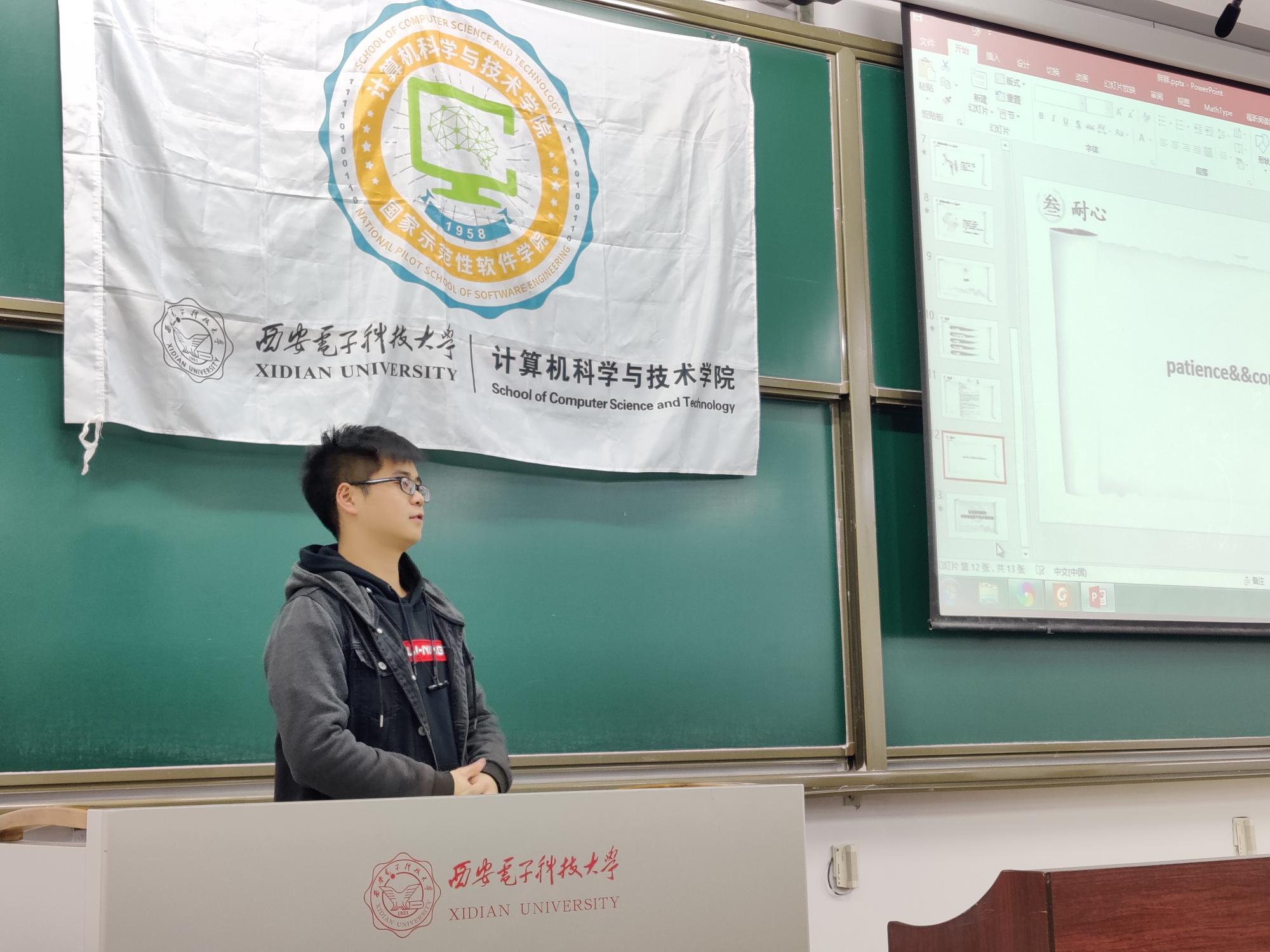 首先进行分享的是陈佳桦、李奇之、张俊华、陈阳四位同学,他们分别保研至北京大学、上海交通大学、北京航天航空大学和taptap点点足彩。四位同学精心准备了PPT,详细介绍了大学期间的个人经历、保研申请过程、不同学校保研考核方式等多方面内容。陈佳桦谈到了保研期间的心路历程,重点分享了北航和北大等高校夏令营和推免面试的内容。李奇之的分享分为个人基本情况、推免考核重点、夏令营经历和个人建议等四个方面,他建议学弟学妹们要尽早着手准备心仪高校的夏令营,根据自己的优劣势认真准备考核内容,特别是要重视机试的考核,多看一些算法方面的书籍,及时查漏补缺。保研至北航的张俊华同学详细介绍了自己的保研历程,分享了自己在保研材料准备中的心得,并针对2017级的同学推荐了保研时间安排,在分享最后,他谈到,“命运掌握在自己的手中,不会因为某件事情就决定你一生的命运。只要我们对未来充满希望,未来就会有无数种可能。”陈阳同学从自己在校期间的学习经历展开分享,重点谈到了自己的项目经历,此外,他向学弟学妹们分享了自己选择研究生学校的主要考虑点,以供同学参考。