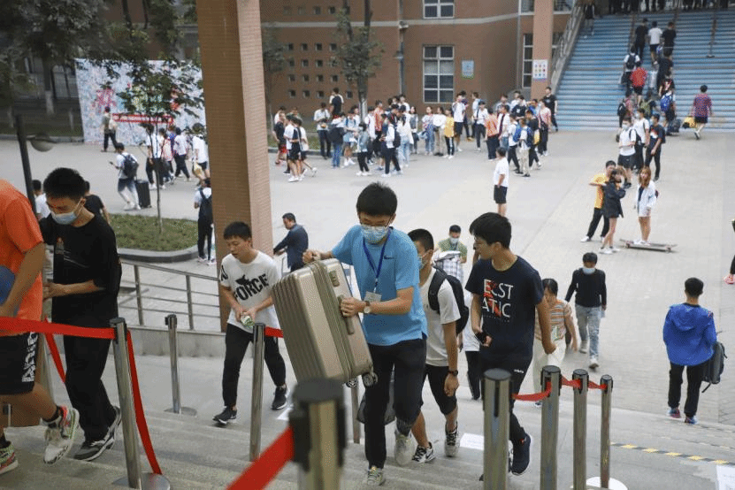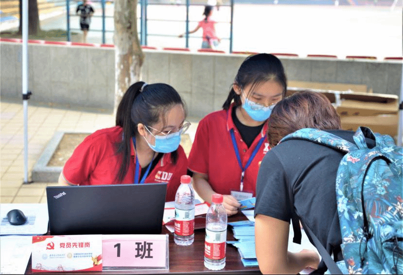 迎新工作开始前,学院广泛招募志愿者,设立迎新党员先锋服务岗,受到广大计科学子热烈响应。迎新期间,全院共有200余名志愿者投入迎新工作,负责路口指引、行李搬运、咨询接待等各项工作,保障了2020级新生顺利报到。2019级本科生陈夺同学与他的小伙伴凌晨就出发,往返高铁站、机场和学校,为新生同学搬运行李。虽然很辛苦,每位志愿者都坚持到最后,完成一项任务后又面带微笑重新迎接下一位新同学。