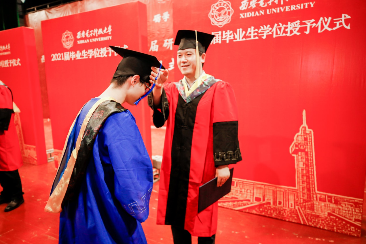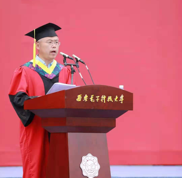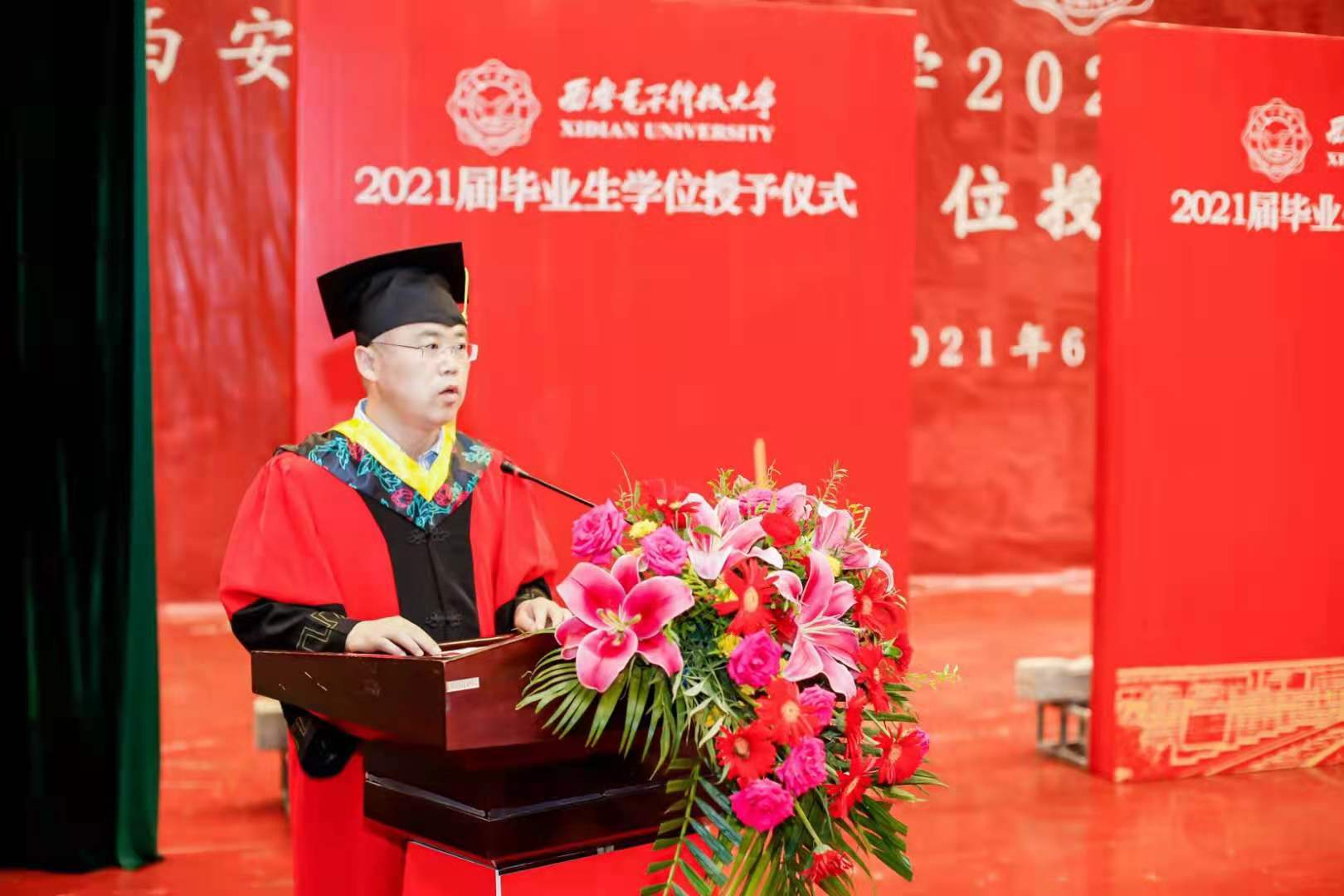 (通讯员 黄彩红 何敏之)庆西电九秩华诞,传三系奋斗精神;勇前行初心不改,瞰千里鸿鹄高飞。6月23日,taptap竞彩足球2021届本科毕业生学位授予仪式和研究生毕业生学位授予仪式先后在南北两校区成功举办。taptap点点足彩副校长王泉教授出席仪式并为毕业生授位。学院党委书记李青山,执行院长崔江涛,学院教授委员会主任苗启广,副院长沈玉龙、宋胜利、万波为2021届937名本科毕业生以及506名硕博士毕业生现场一一拨穗授位。学院领导张卫东、赵韩强、张莹莹,毕业班辅导员、学院办公室人员和教师代表出席了仪式。仪式由院党委书记李青山主持。
