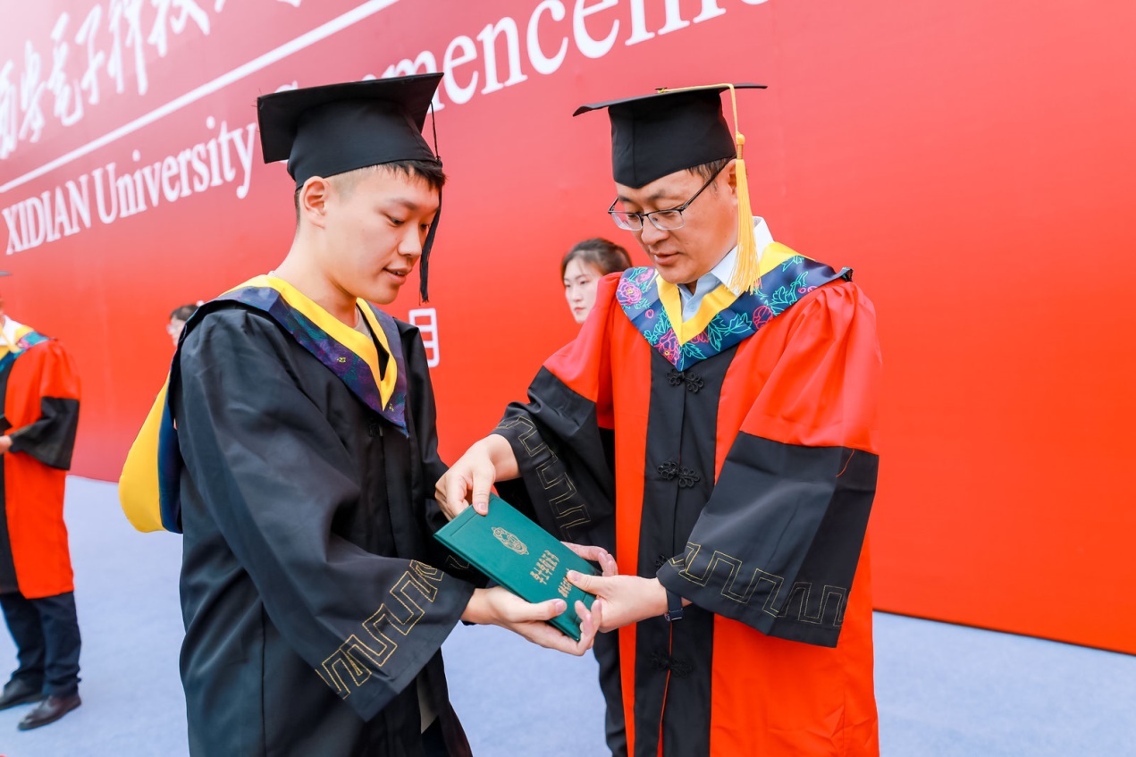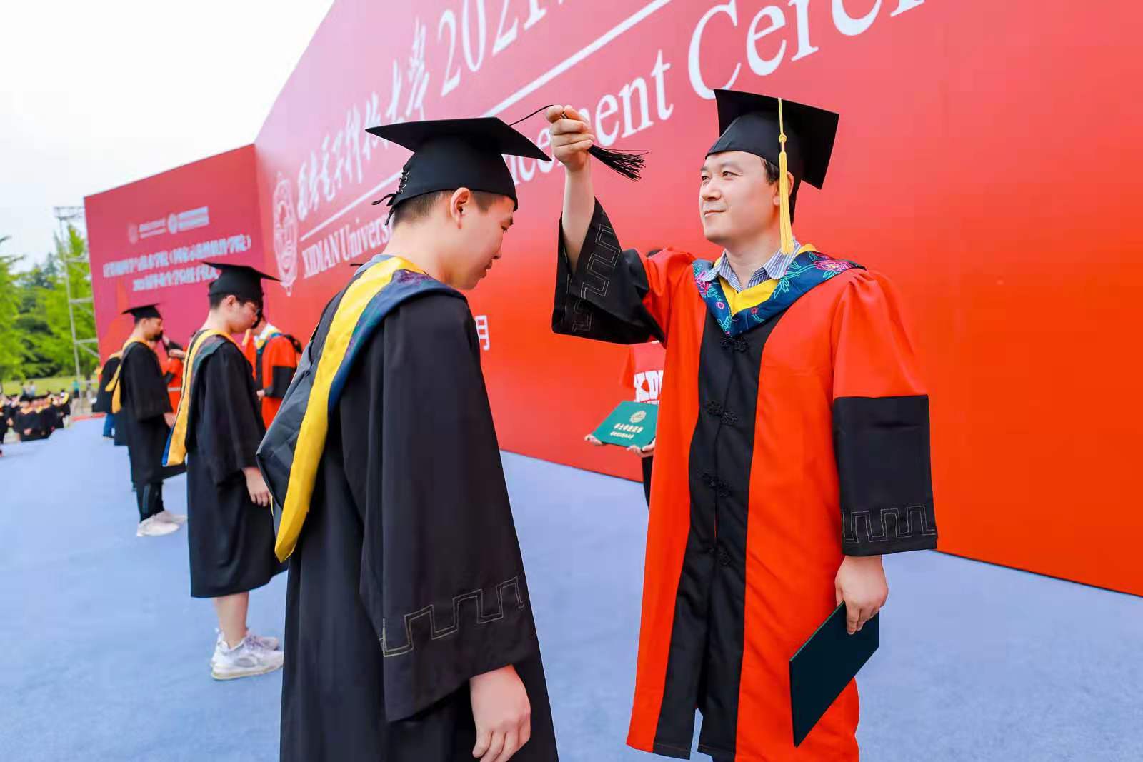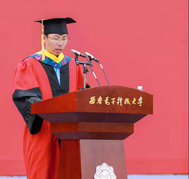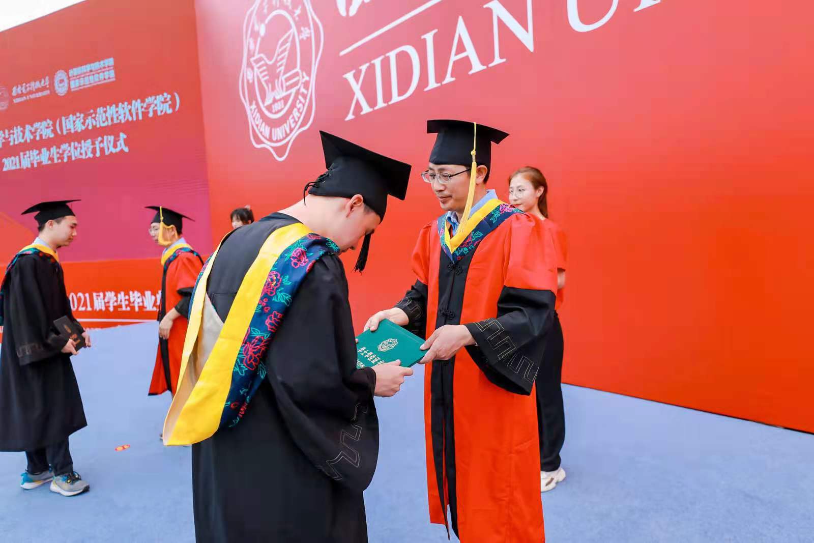 (通讯员 黄彩红 何敏之)庆西电九秩华诞,传三系奋斗精神;勇前行初心不改,瞰千里鸿鹄高飞。6月23日,taptap竞彩足球2021届本科毕业生学位授予仪式和研究生毕业生学位授予仪式先后在南北两校区成功举办。taptap点点足彩副校长王泉教授出席仪式并为毕业生授位。学院党委书记李青山,执行院长崔江涛,学院教授委员会主任苗启广,副院长沈玉龙、宋胜利、万波为2021届937名本科毕业生以及506名硕博士毕业生现场一一拨穗授位。学院领导张卫东、赵韩强、张莹莹,毕业班辅导员、学院办公室人员和教师代表出席了仪式。仪式由院党委书记李青山主持。