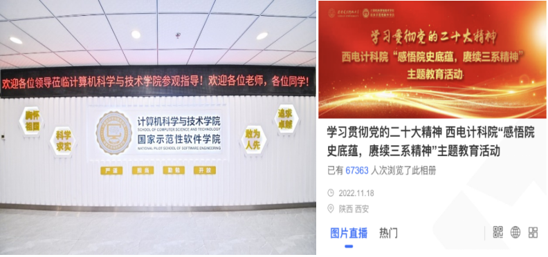 “少年强,则国强;少年自信,则国自信”,党的二十大报告强调要实施科教兴国战略,强化现代化建设人才支撑。西电计科院不断探索优化育人方式,强化育人成效,此次主题教育活动受到了学校师生的广泛关注,除一百余人现场交流互动外,还有共计超过6.7万人次访问直播链接。活动通过四个环节互动,帮助学院新入职青年教师、大学生党员和入党积极分子、卓越班新生更深入地了解学院发展历程及人才培养特点,使卓越班新生更好地了解专业优势和培养方案,做好学习规划,鼓励师生传承三系精神,做优秀的计科人。