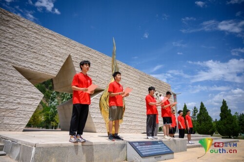 活动中,实践队通过追忆党史,访谈调研,收集红色故事,领悟南梁精神。在“两点一存”广场,实践队员深情朗诵原创诗歌,以铿锵有力的诗词致敬谢子长、刘志丹等革命先烈,立下青春誓言;在列宁小学旧址,南梁镇列宁小学语文组组长王珂结合复原场景、历史照片为实践队带来了一堂沉浸式主题团课;在华池县林镇街道,革命英雄王殿斌的后代王凤许向实践队员讲述他爷爷的英雄事迹,队员们在聆听中不断汲取坚不可摧的红色力量。