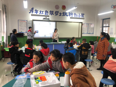 下午,志愿者面向高年级学生开展了程小奔可编程机器人的课程培训。通过课程的学习,小学生们掌握了如何通过电脑模块化编程实现机器人的图形规律变化显示以及动态路线规划移动等功能。在此期间,支教志愿者向小学生们耐心的解释机器人工作原理以及编程逻辑思维,从而使同学们更加清楚的了解电脑控制机器人背后的原理过程。