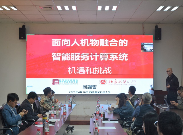 李青山首先代表计科院热烈欢迎CCF服务计算专委会走进西电,并表示希望通过本次活动加强与服务计算专委会在学术交流、人才培养等方面的沟通与合作。王尚广教授带来了“6G天地一体化服务计算”的报告,报告首先对6G核心网认知服务化架构的研究进行了介绍,然后介绍了目前面临的主要挑战,包括弱认知、低算力、全场景等,以及解决思路,包括云/端核心网、卫星边缘计算、计算与通信置换等。最后,报告介绍了研究团队开展的6G核心网认知服务化架构在轨实验、5G核心网星载部署与卫星在轨计算任务动态卸载等工作。邓水光教授围绕移动服务计算带来了精彩的报告,报告从服务计算的概念和发展谈起,着重介绍和展望了移动服务计算的研究问题,之后就移动边缘计算中的应用部署、服务缓存、计算卸载等问题展开了讨论。刘譞哲研究员的报告题目为“面向人机物融合的智能服务计算系统:机遇和挑战”。报告从服务计算系统的角度出发,探讨了人机物融合环境下云网边端全栈服务化、泛在组装化和场景智能化方面的机遇与挑战,并介绍了研究团队近期的研究工作和体会。