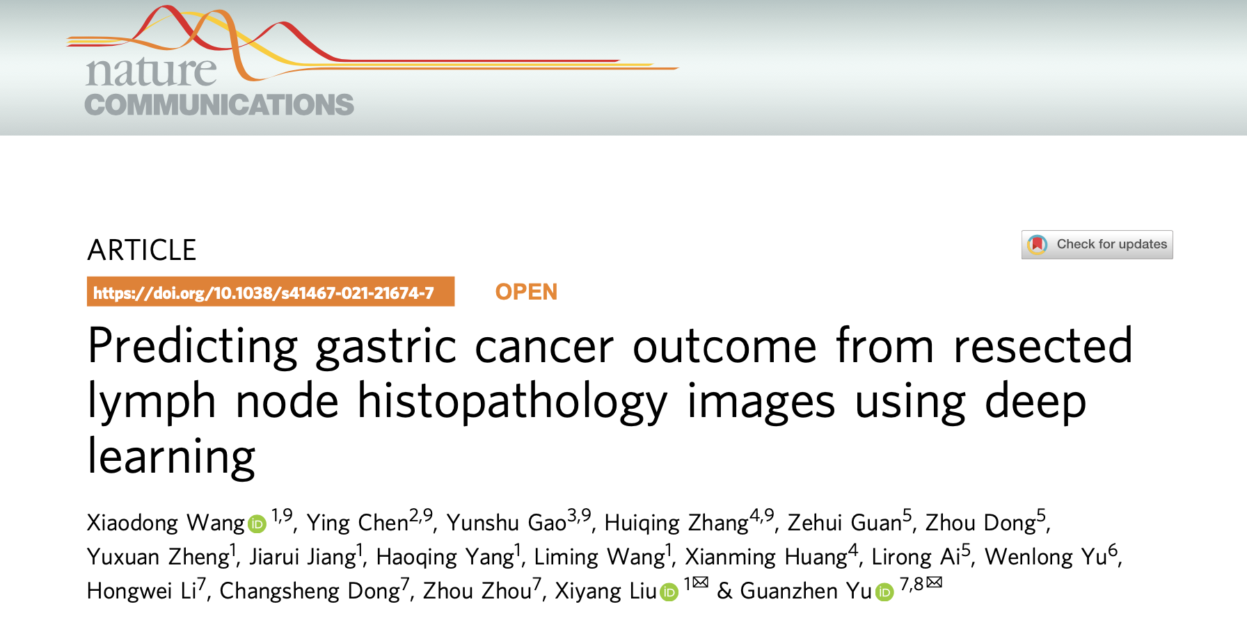 (通讯员 王晓东)taptap官网taptap竞彩足球软件工程研究所刘西洋教授团队,在学院“软件工程”学科建设支持下,与上海龙华医院于观贞教授、长海医院陈颖教授等团队合作,开展了胃癌淋巴结转移预后预测的AI研究,历时三年,近期以西电第一作者单位在Nature Communications (IF=12.1)发表成果“Predicting gastric cancer outcome from resected lymph node histopathology images using deep learning”,研发了针对胃癌淋巴结病理临床诊断与精准亚分期的AI系统。