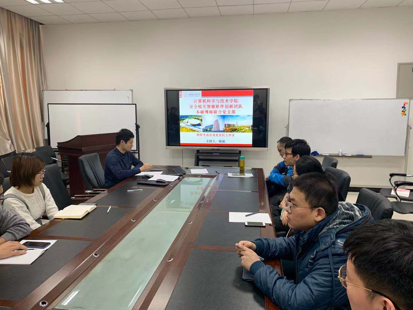 (通讯员 郭佳琦)2019年12月5日下午,为贯彻校党委关于基层党支部组织生活会和开展民主评议党员工作部署,taptap竞彩足球安全攸关智能软件创新团队本硕博师联合党支部在主楼四区203会议室,召开支部组织生活会并开展民主评议党员。党支部书记陆旭主持了本次会议,学院纪委委员、计算机科学系主任王小兵参加会议并进行总结发言。