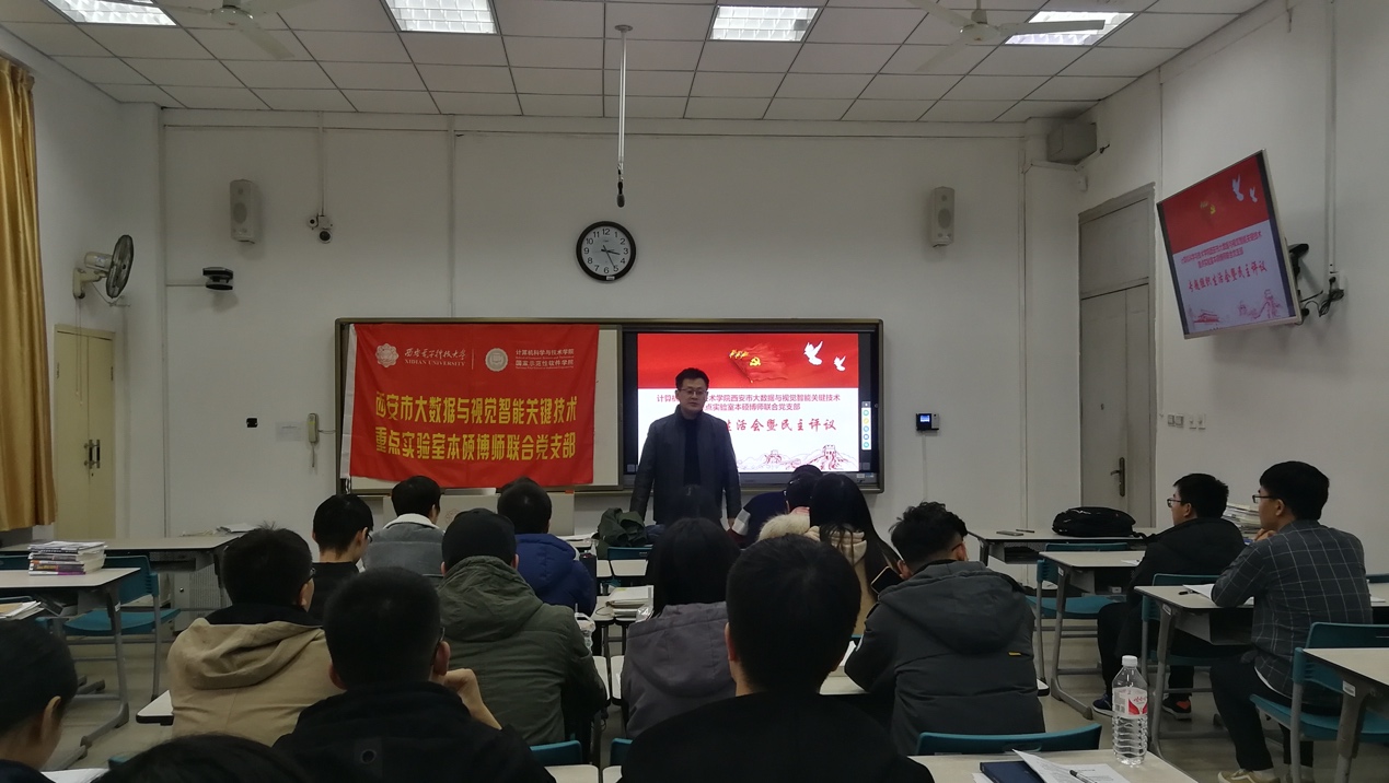 (通讯员 段金龙 葛道辉 刘向增) 按照学校党委关于基层党支部组织生活会和开展民主评议党员工作的要求和部署,西安市大数据与视觉智能关键技术重点实验室本硕博师联合党支部于2019年11月29日在南校区C楼123教室召开了专题组织生活会暨党员民主评议。支部书记刘向增主持了本次会议,taptap竞彩足球副院长苗启广参加会议并进行总结发言。