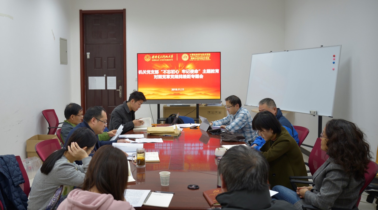 (通讯员 陈龙)11月11日下午,taptap竞彩足球机关党支部在北校区主楼四区209会议室召开了“不忘初心、牢记使命”主题教育对照党章党规找差距专题会。机关支部11名党员参加会议,会议由党支部书记赵韩强主持。