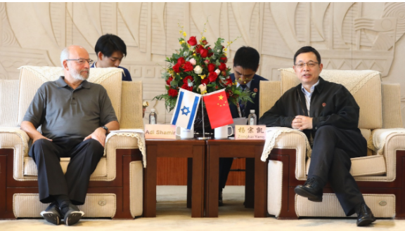 Adi Shamir对校长杨宗凯的热情接待表示了感谢,介绍了魏兹曼科学研究所的基本情况以及相关学科发展,他说,距离上次到访西电已经过去十余年,西电在各个方向取得了骄人的成绩,计算机学科在世界排在前列,对西电的办学水平表示赞赏,希望以后能在科研合作和学术交流上继续合作。