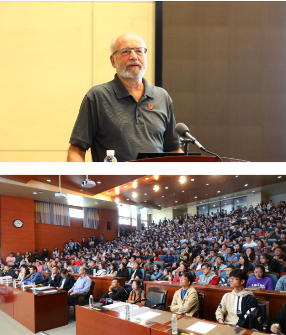 随后,Adi Shamir一行到行政楼210报告厅作了题为“The Insecurity of Machine Learning: Problems and Solutions”的学术报告。计科院执行院长崔江涛介绍了Adi Shamir的基本情况,他说,本次活动是“国际化牵引行动”的一部分,Adi Shamir是世界著名密码学专家,在密码学方面有着深厚造诣,希望与会师生抓住这次宝贵的机会积极交流。全校四百余名师生前来聆听,现场座无虚席,Adi Shamir循序渐进讲述了深度神经网络在目标识别、自动驾驶和网络安全方面的问题以及解决方法,会后和师生进行了深入的交流。