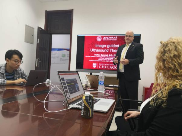 7月8日上午, Dr. Steffen Sammet教授以“Image-guided Ultrasound Therapy”为题,他的夫人Dr. Christina Sammet(美国西北大学放射科的诊断医学物理师)以“Balancing Risks in Pediatric Imaging”为题,分别为taptap竞彩足球研究生做了两场生动有趣的报告,对于拓展研究生的临床科研视野,开展国际合作具有非常重要的意义。