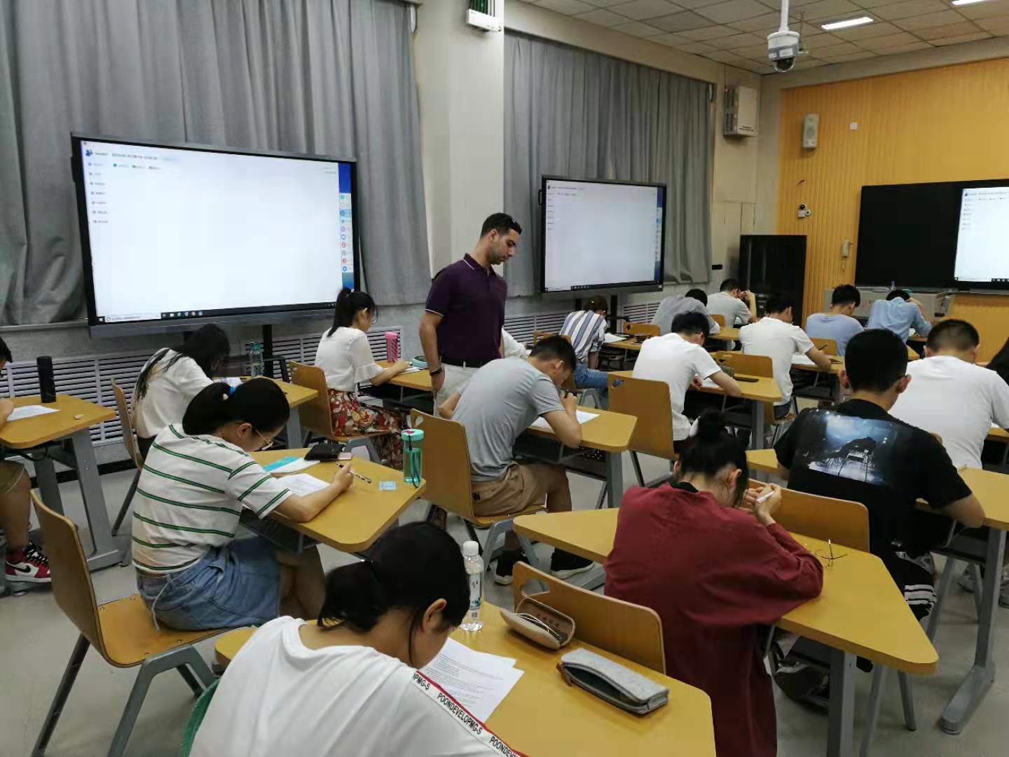 教授在课堂小测试中巡视