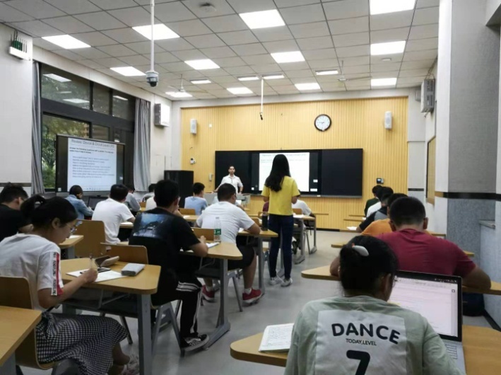 学生对这门课的兴趣很浓,原本只能容纳30人的智慧教室,吸引了很多前来旁听的学生,外教瞬间被学生的热情所感染,东西方思想的火花在这里开始碰撞。该课程使同学们最大感受是“自由,开放,参与,互动”。“国内”在教学方式上更多以老师讲授为主,学生处于被动地位,课堂氛围较沉闷,教学方式较单一。此次,外教则更多注重学生学习知识时的体验过程,课堂上更多采用分组探讨,活动与游戏等方法传授知识。该门课程使人印象最深的是外教讲授“噪声对信息传输的影响”时和学生开展的一个游戏。在这个游戏中,外教首先低声细语地告诉第一个学生一条信息,接着第一个学生再低声细语地告诉第二个学生,……。整个过程中,其他学生大声地交流来干扰信息的传递,直到最后一个学生收到信息。结果发现最后一个学生收到的信息与外教初始传递的信息竟然有很大的出入。学生通过该游戏,全程参与到老师课堂教学活动中,这种形式的教学,形象,生动,学生对课堂内容理解深刻,从避免了教学的枯燥乏味,学生注意力容易分散等问题。