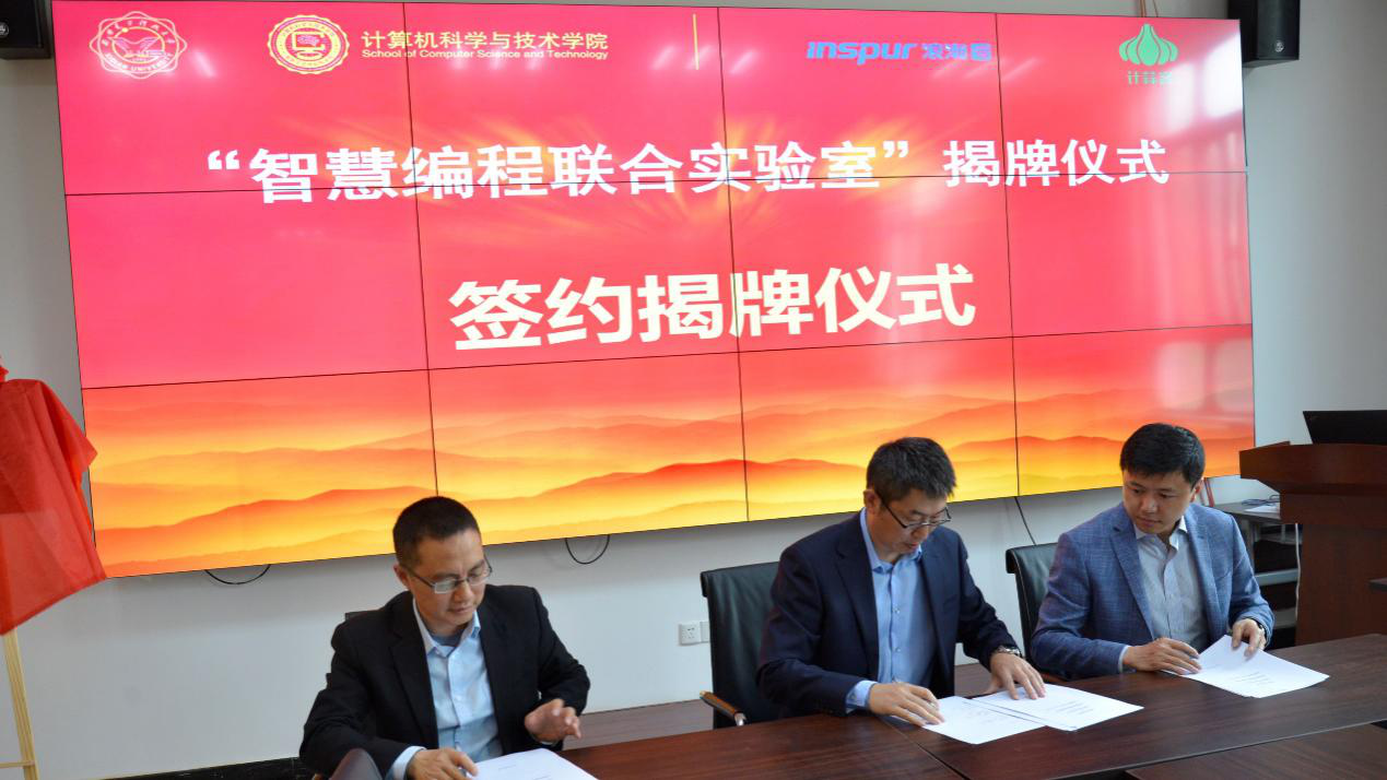 崔江涛首先介绍了学院人才培养的基本情况,他表示此次与浪潮和矩道优达合作建立联合实验室是大家共同合作的结果,他希望通过联合实验室的建设,推动教育课堂改革,促进计算机导论与程序设计基础编程课程的教学模式创新,使得信息技术和智能技术深度融入教育教学全过程,提高学院人才培养水平,促进高校人才培养与企业发展的合作共赢。