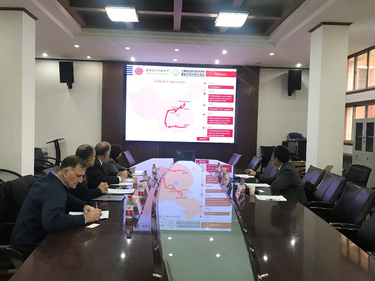 Kevin Truman首先对西电的热情接待表示了感谢,并对西电在过去两年中取得的成就表示了祝贺。Kevin Truman表示密苏里大学堪萨斯分校近几年也在不断扩大学校招生规模、增加科研项目和支持创新创业发展,他提到此次一同来访西电的还有计算机和工程学院的两位教授,这两位教授的研究成果已被阿里巴巴蚂蚁金服收购,且两位教授也分别在蚂蚁金服担任首席技术执行官和研发主任,此类公司对专业技术能力优秀且熟悉中美语言文化的人才需求很大,他希望以此为契机和西电在全球人才培养方面开展合作。