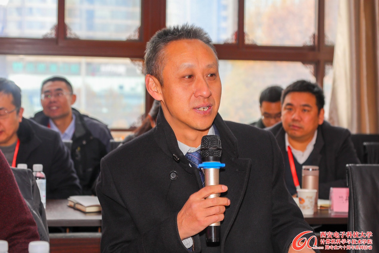 崔江涛代表学院对兰州大学等高校代表表示欢迎。他从成果奖励、学科水平、师资队伍、人才培养、优秀校友等方面对西电计算机科学与技术学科的发展历史和现状进行了详细介绍,提出要在现有学院及学科发展基础上采取超越领先的学院及学科建设的“三步走”中长期发展战略。