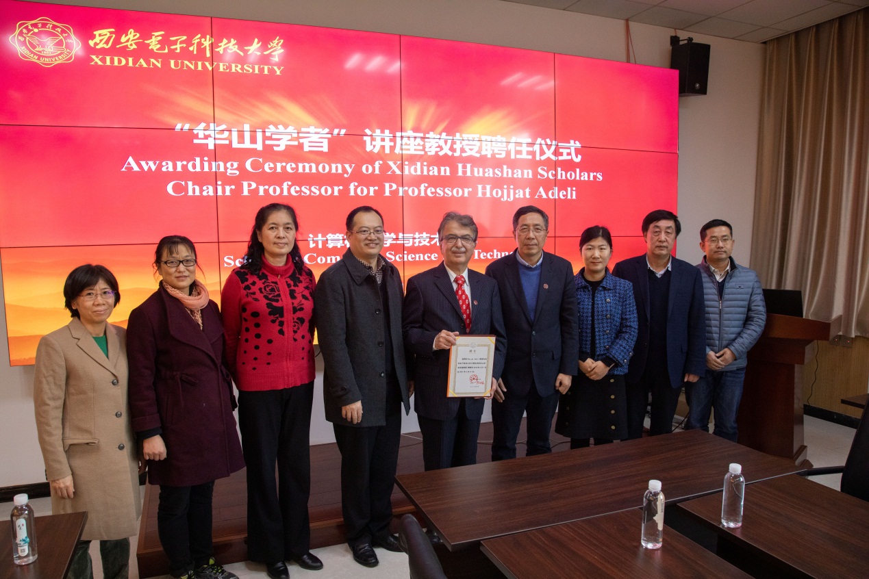 聘任仪式上,王宇平介绍了Hojjat Adeli教授的个人情况。李建东代表学校宣读了聘任决定,并为Hojjat Adeli教授颁发聘书和西电校徽。