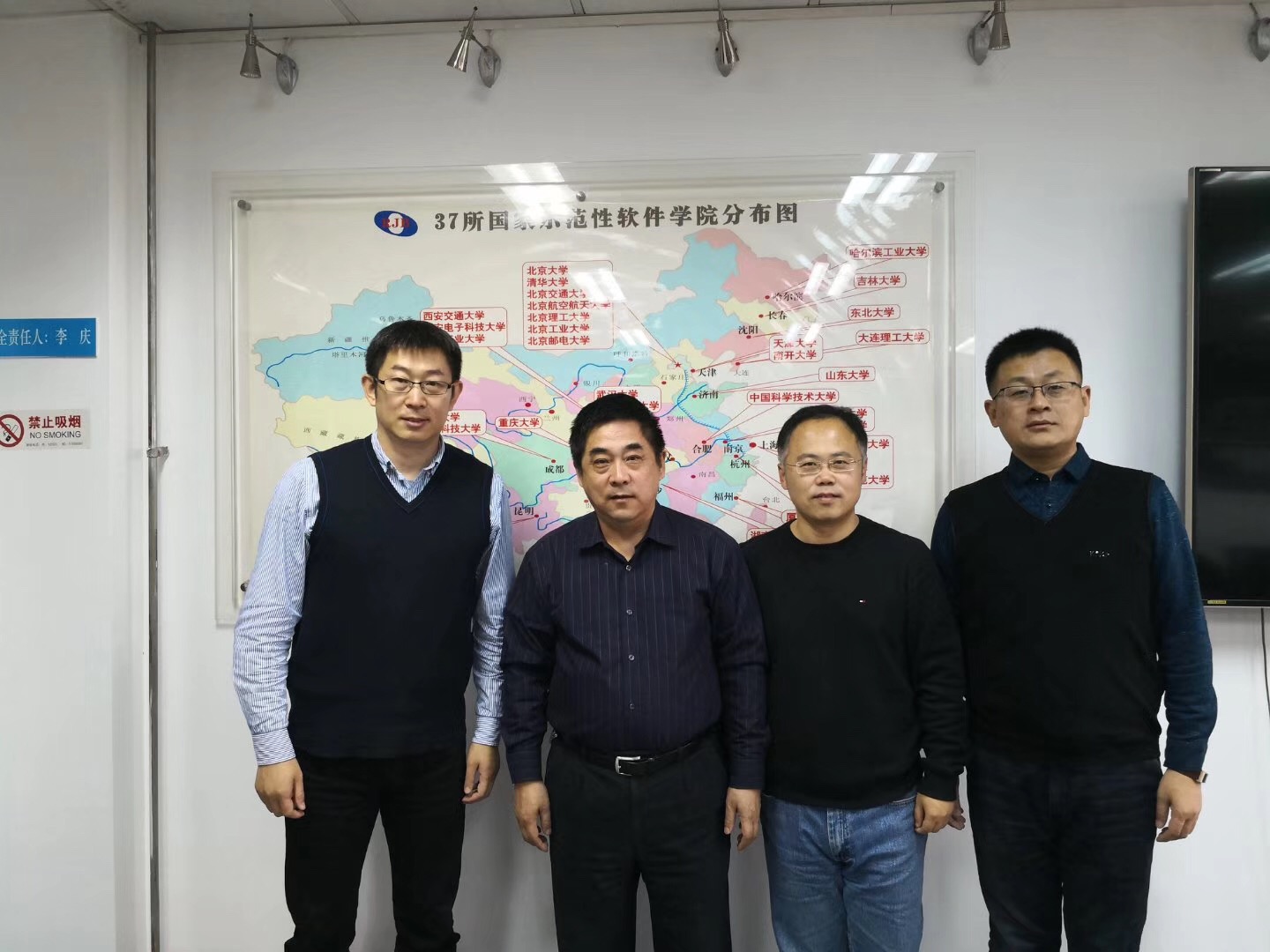 2018年11月15日,taptap点点足彩taptap竞彩足球(国家示范性软件学院)书记李青山教授、院长崔江涛教授、副院长苗启广教授等一行专程赴国家示范性软件学院联盟调研,联盟理事长、北京交通大学软件学院院长卢苇教授等热情接待了来访,在联盟会议室进行了长达3个多小时的交流。