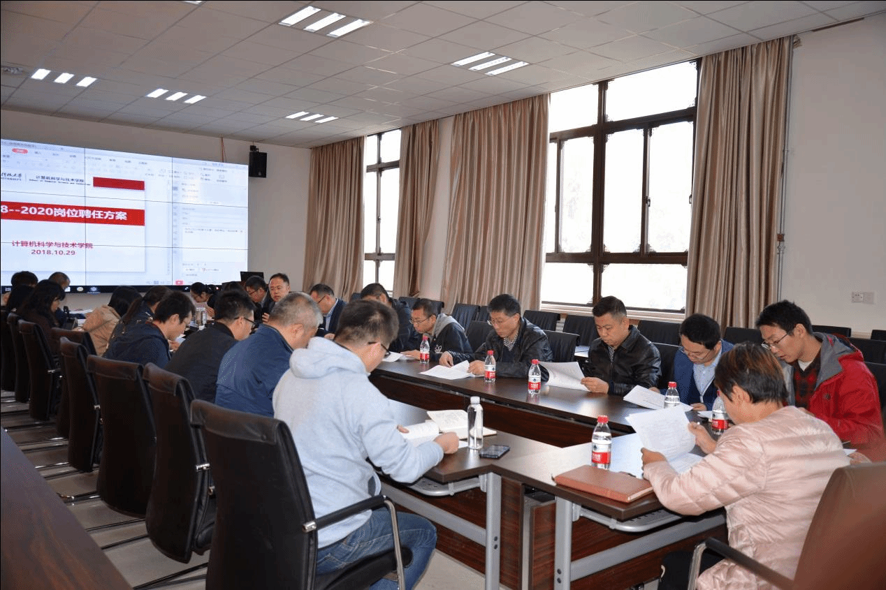 10月31至11月1日,taptap竞彩足球学院领导深入到计算机工程系、软件工程系、计算机科学系、网络工程系和实践教学中心等5个基层单位进行2018~2020年岗位聘任方案宣讲,就学校第二轮岗位聘任学院实施方案与广大教师进行深入研讨交流。学院党委书记李青山、执行院长崔江涛、副院长赵韩强、院办主任向麟海组成宣讲团代表学院参加会议,会议由学院党委书记李青山主持。