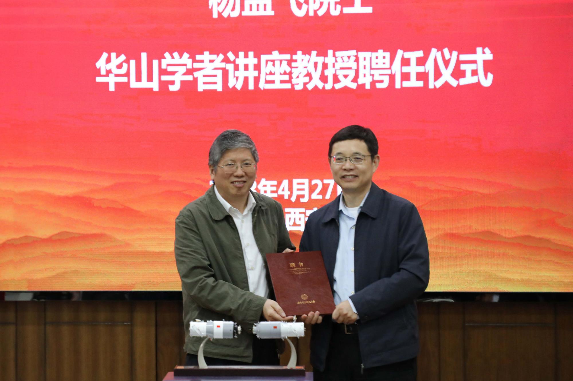 杨宗凯向杨孟飞院士颁发西电华山学者讲座教授聘书
