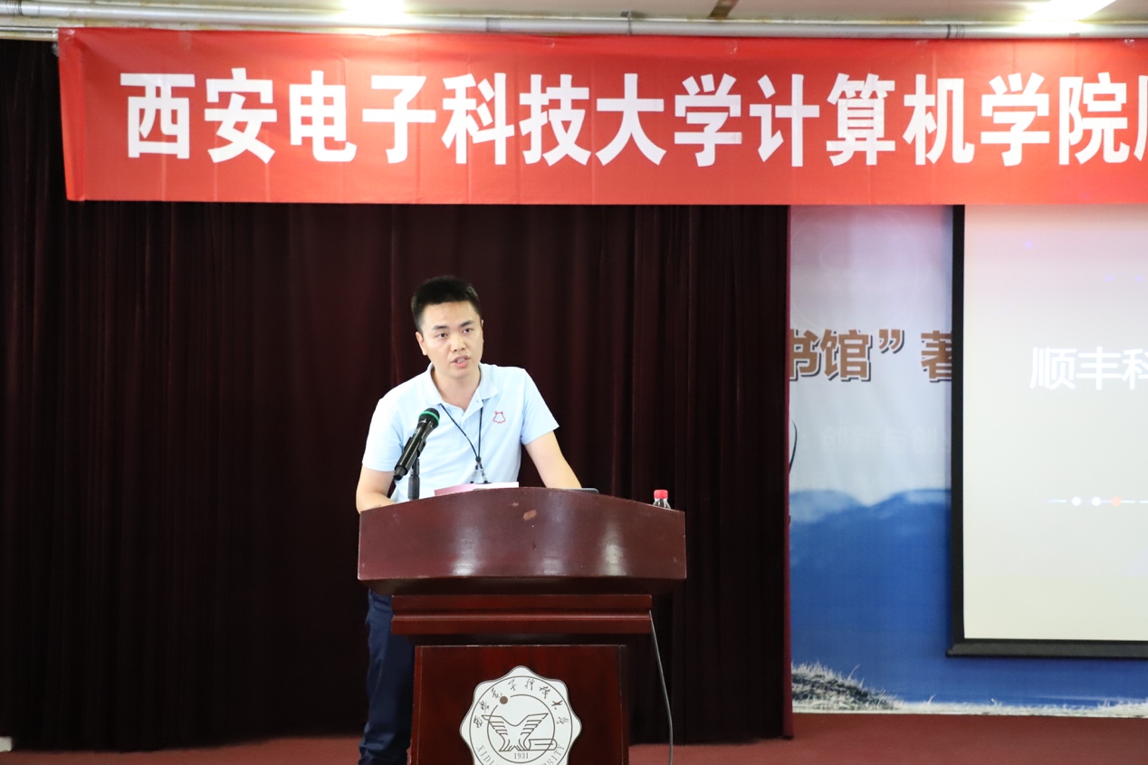 2016级研究生李强同学代表获奖者致辞,他感谢了顺丰科技对学院学生工作的支持和对学生科研的资助,并指出学生要融入社会,贴近企业,为社会的发展贡献自己的力量。