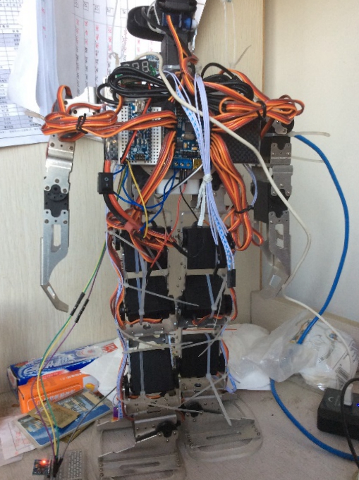 自2006年留校工作以来,苗启广教授每年都会担任国家大学生创新计划学生指导教师。用心指导,是苗启广的基本理念。只要学生有问题,无论早晚,电话、Email、微信、面谈,都会约到他,进行深度交流。被指导国创的黄志新同学,大三国创项目结题后,被激发了更强烈的学习和研究兴趣,萌发了做一个应用项目,将大学三年所学知识全部应用串起来的想法。咨询苗老师后,苗老师建议他自己动手设计一个机器人,并且希望“尽你所能,能自己做的就不要买现成的”。经过一年的努力,黄玉新设计出了“语音识别合成+图像跟踪识别+机器人平衡控制”的能够摔倒自己爬起来的人形步行机器人,并藉此获得了多所大学的Offer。现在已经在德国留学三年的黄玉新,重新设计了一款更精致的机器人,并获得UBICOMM2017国际会议Best Paper奖。