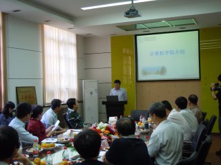 院长马建峰从学院历史概况、师资队伍、专业建设、科学研究、人才培养、发展现状、横向对比、存在的问题、对计算机学科的认识、计算机学科发展现状和对学校工作的建议,以及学院所面临的困难等多个方面作了汇报。汇报结束后,郑晓静与学院负责人、专