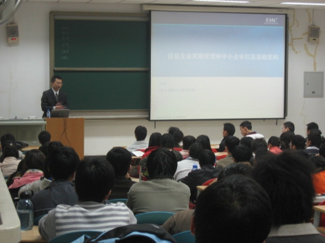 为配合《存储技术基础》课程的实施,于2007年11月13日19:00-21:00,在新校区信远楼2区117教室,taptap官网邀请EMC公司刘磊工程师为计算机学院05级本科生作了《信息生命周期管理和中小企业信息基础架构》的技术讲座。刘磊工程师结合实际案例,说明了当前存储技术的发展情况。在整个讲座过程中,同学们表现出浓厚的兴趣并积极参与互动,现场气氛热烈,取得了良好的效果。
