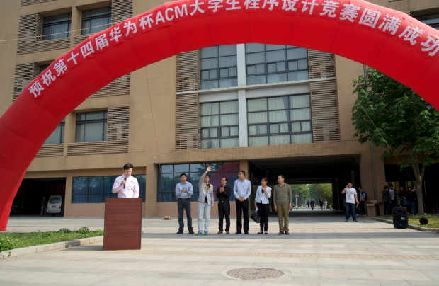 在裁判代表和学生代表分别宣誓之后,计算机学院副院长、ACM竞赛基地负责人崔江涛宣布第十四届“华为杯”大学生程序设计竞赛开幕。开幕式后,与会嘉宾参观了竞赛现场。