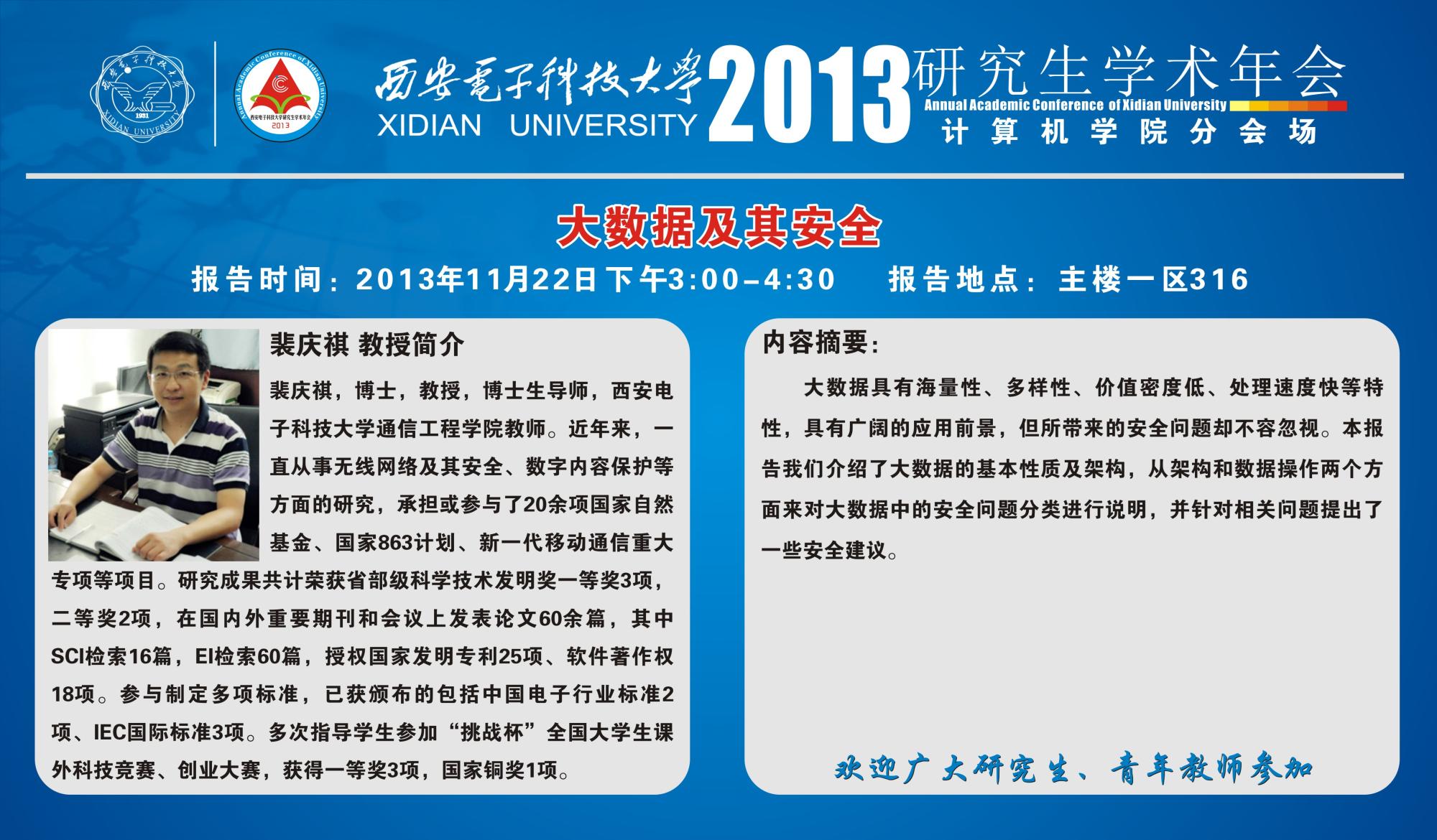2013年研究生学术年会计算机学院分会场-裴庆祺教授报告安排